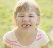 młoda dziewczyna gra z dużym muszli przed jej uszy