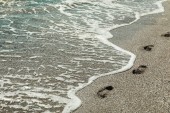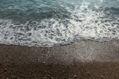 Morski piasek i spieniona woda, widok z góry. Tło letnie
