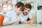 Zdjęcie "Ojciec i syn gra w szachy na podłodze na tle dziecka pokoju. Dorosły mężczyzna nauczanie dziecko pojęcie" może być wykorzystywane do celów osobistych i komercyjnych zgodnie z warunkami zakupionej licencji Royalty-free. Obraz jest dostępny do pobrania w jakości wysokiej rozdzielczości do 5760x3840.