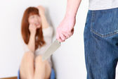 przycięte widok zabójca atakuje kobietę z nożem w łazience