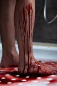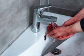 częściowy widok człowieka mycia rąk krwawienie w zlewu