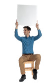 biały bąbelek człowiek na białym tle przytrzymanie uśmiechający się