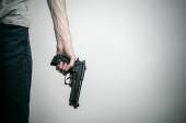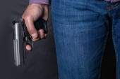 przycięte widzenia karnego ukrycia pistolet stojąc w pobliżu kobiety na czarno