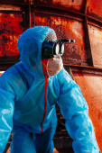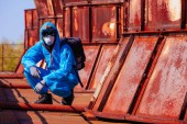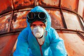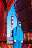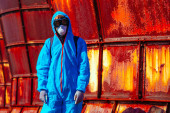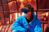 maski fabryka maska maseczka mężczyzna niebieski ochrona pomarańczowy przebranie roślina twarz w twarzy