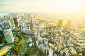 Widok Tokyo City Architecture at Sunrise, Japonia
