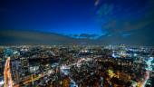 Panoramiczny widok budynków miejskich nocą, Tokio, Japonia