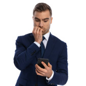 Zdjęcie "zaskoczony biznesmen gospodarstwa cyfrowego tablet z pustym ekranem i obejmujące usta z ręki izolowane na białym" może być wykorzystywane do celów osobistych i komercyjnych zgodnie z warunkami zakupionej licencji Royalty-free. Obraz jest dostępny do pobrania w jakości wysokiej rozdzielczości do 5760x3840.