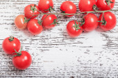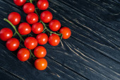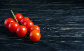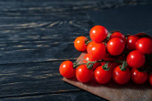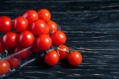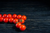 Pomidory cherry na ciemnym czarnym drewnianym stole
