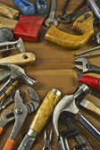 Zestaw narzędzi na podłoże drewniane koncepcja dzień ojca