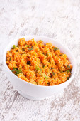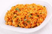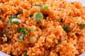 kisir, wklej spęczniona sałatka z pomidorów, cebuli i natki pietruszki