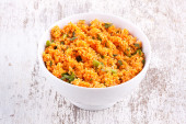 kisir, wklej spęczniona sałatka z pomidorów, cebuli i natki pietruszki