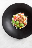 Świeże sałatki. Koncepcja smacznego i zdrowego posiłku. Ciemny kamień BAC