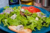 Warzyw plasterkowane czerwony pomidor, żółty papryka na świątekim stole. Urodziny