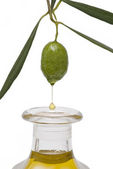 butelka oliwy z oliwek i oliwki.