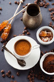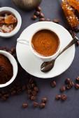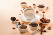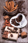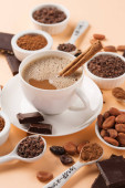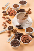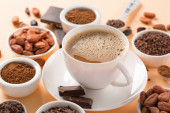 Naturalne ziarna kakaowca i gorąca czekolada