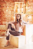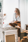 Piękny młody artysta kobieta stwarzające w Pokój