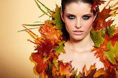 Młoda kobieta w kreatywnym wizerunku ze srebrnym makijażem artystycznym.