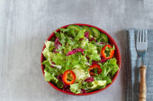 Zdjęcie "Widok z góry Sałatka warzywa świeże." może być wykorzystywane do celów osobistych i komercyjnych zgodnie z warunkami zakupionej licencji Royalty-free. Obraz jest dostępny do pobrania w jakości wysokiej rozdzielczości do 5760x3840.