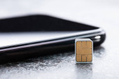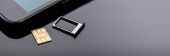 Karta nano SIM w adapterze karty z wysuwany PIN na powierzchni betonowej