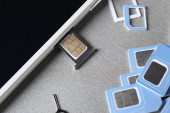 Zdjęcie "Karta nano SIM w adapterze karty z wysuwany PIN na powierzchni betonowej" może być wykorzystywane do celów osobistych i komercyjnych zgodnie z warunkami zakupionej licencji Royalty-free. Obraz jest dostępny do pobrania w jakości wysokiej rozdzielczości do 5760x3840.