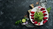 Zdjęcie "Sałatka warzywna z tuńczyka i jaj przepiórczych. Widok z góry. Wolne miejsce na tekst." może być wykorzystywane do celów osobistych i komercyjnych zgodnie z warunkami zakupionej licencji Royalty-free. Obraz jest dostępny do pobrania w jakości wysokiej rozdzielczości do 5760x3840.