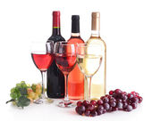asortyment wino w okularach i butelek na białym tle