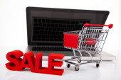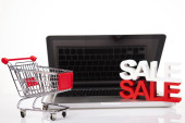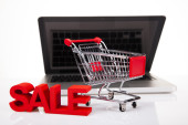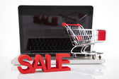 Hypermarket pracownik piśmie sprzedawcy na wyświetlaczu