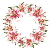 różowy Lilie ramka na białym tle