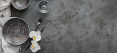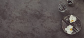 Elegancja stół z dzianiny szary serwetki, sztućce, Cerami