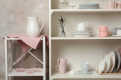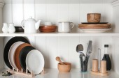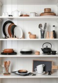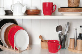 Zdjęcie "Stylowa Podstawka do przechowywania z różnymi ceramicznymi naczynia w domu" może być wykorzystywane do celów osobistych i komercyjnych zgodnie z warunkami zakupionej licencji Royalty-free. Obraz jest dostępny do pobrania w jakości wysokiej rozdzielczości do 5760x3840.