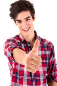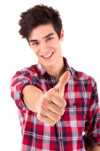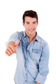 Zdjęcie "uśmiechnięty facet Wyświetlono kciuk w" może być wykorzystywane do celów osobistych i komercyjnych zgodnie z warunkami zakupionej licencji Royalty-free. Obraz jest dostępny do pobrania w jakości wysokiej rozdzielczości do 5760x3840.