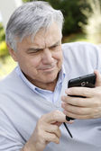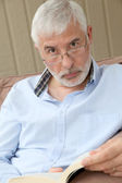 starszy mężczyzna czytanie gazety z zakłopotany wygląd