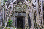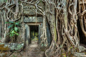 drzwi i drzewa korzenie w starożytnej świątyni kamień