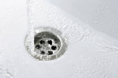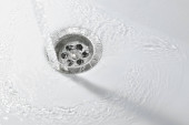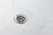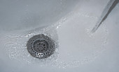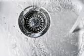 Strumień wody przepływa do zlewu, pojęcie ścieków i problemów środowiskowych