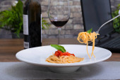 Makaron fettuccine z sosem Carbonara na ser w płytce