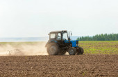 Pole uprawowe traktorów na wiosnę, uprawa rolnicza jest
