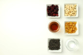 Akcesoria do czasu kawy na białym tle drewnianym, miejsce na te