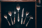 Vintage stołowe na ciemnym tle teksturowane, zbliżenie