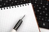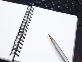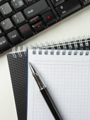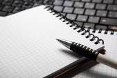 Biały drewniany stół z pióra, myszy, notebook. Miejsce w przestrzeni roboczej.