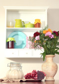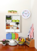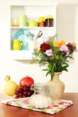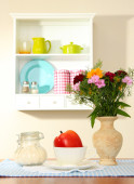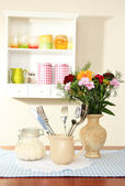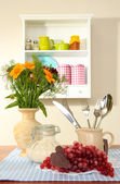 kompozycja kuchnia na stole na tle półka