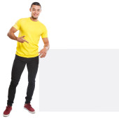 młody Latynos człowiek pokazując wskazując reklama marketingowa ludzie izol