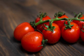 Zdjęcie "Świeże pomidory wiśniowe na ciemnym tle drewna." może być wykorzystywane do celów osobistych i komercyjnych zgodnie z warunkami zakupionej licencji Royalty-free. Obraz jest dostępny do pobrania w jakości wysokiej rozdzielczości do 5760x3840.