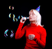 Urodziny, balon party. Młoda kobieta obchodzi swoje urodziny.