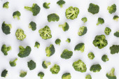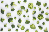 Płaska kompozycja z świeżymi zielonymi brokułami na białym tle