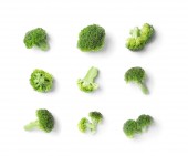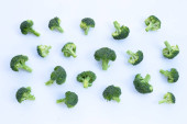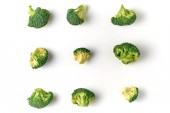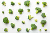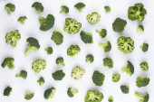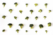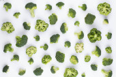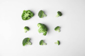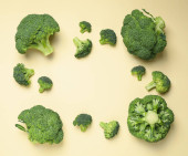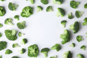 Płaska kompozycja świecowa ze świeżymi zielonymi brokułami na kolorowym tle