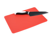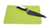 Widok z góry noża na zielonej deski do krojenia z białym tłem. Koncepcja gotowania.