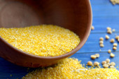 Soczewica, groszek, Grits kukurydzy. Jasne tło żywności. Zdrowa żywność