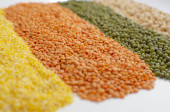 Zdjęcie "Soczewica, groszek, Grits kukurydzy. Jasne tło żywności. Zdrowa żywność" może być wykorzystywane do celów osobistych i komercyjnych zgodnie z warunkami zakupionej licencji Royalty-free. Obraz jest dostępny do pobrania w jakości wysokiej rozdzielczości do 5760x3840.