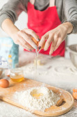 Kobieta ręce przesiewanie mąki z filtrem mąki