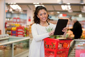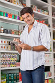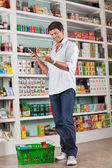 mężczyzna z telefonu komórkowego i sklep spożywczy torby papierowe